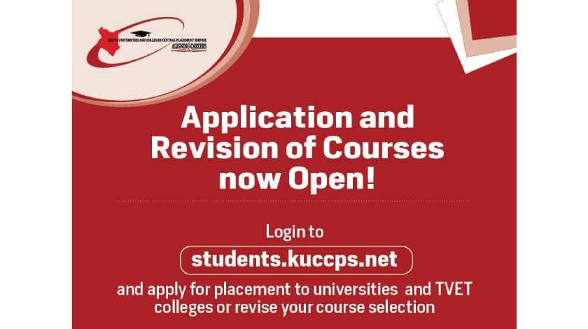 13 Oct 2023 KTVC Academic, StudentAffairs 0 KUCCPS Portal Currently Open for Selection and Revision of Courses We wish to inform prospective students that course application /revision at the Kuccps student portal is currently open. They should take this Read More
